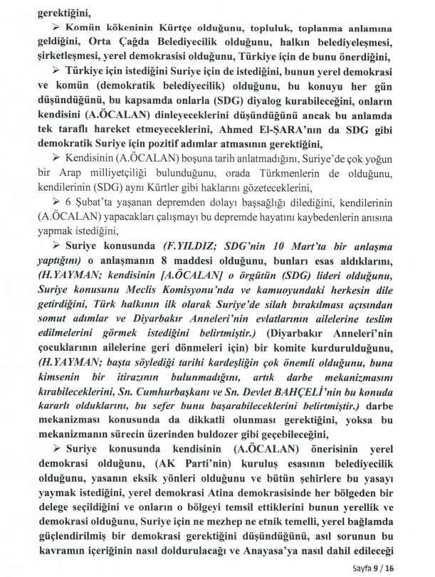 Öcalan, Suriye Demokratik Güçleri (SDG) ile Şam yönetimi (Ahmed El-Şara) arasında diyalog kurulması gerektiğini belirtirken, Suriye’deki Türkmen varlığına özel bir parantez açtı: