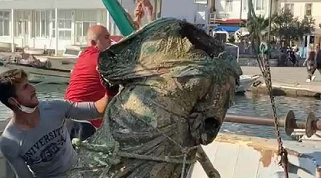 Balıkçıların ağına bu kez heykel takıldı