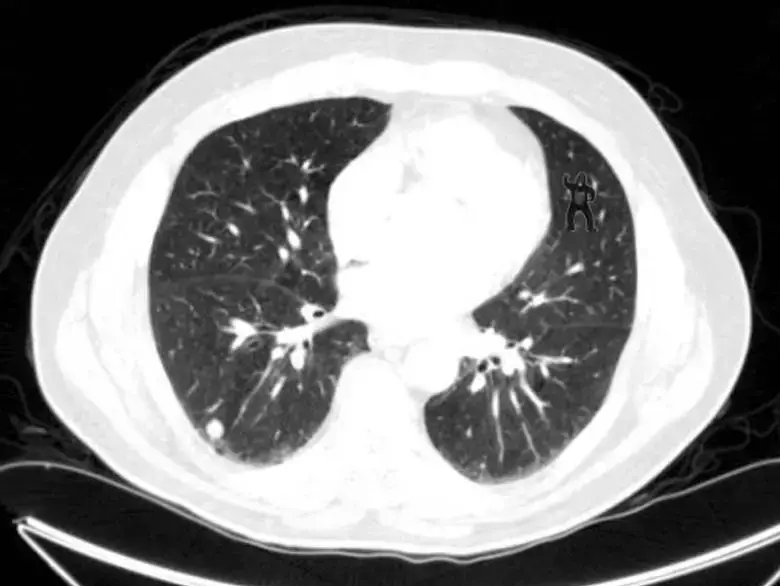 Bunun sonucunda, işleri fark etmek olan profesyonel araştırmacıların bile istem dışı körlük sorunları yaşadıkları anlaşıldı. Yakın tarihli bir çalışmada, araştırmacılar bir grup radyoloğa bir dizi X-ışını taraması verdi. Onlardan akciğer kanseri nodüllerini aramalarını istedi. Bu kişiler için bu görev günlük rutinlerinin bir parçasıydı. Şimdi aşağıdaki görüntüye dikkatle bakın. Garip bir şey fark ettiniz mi?